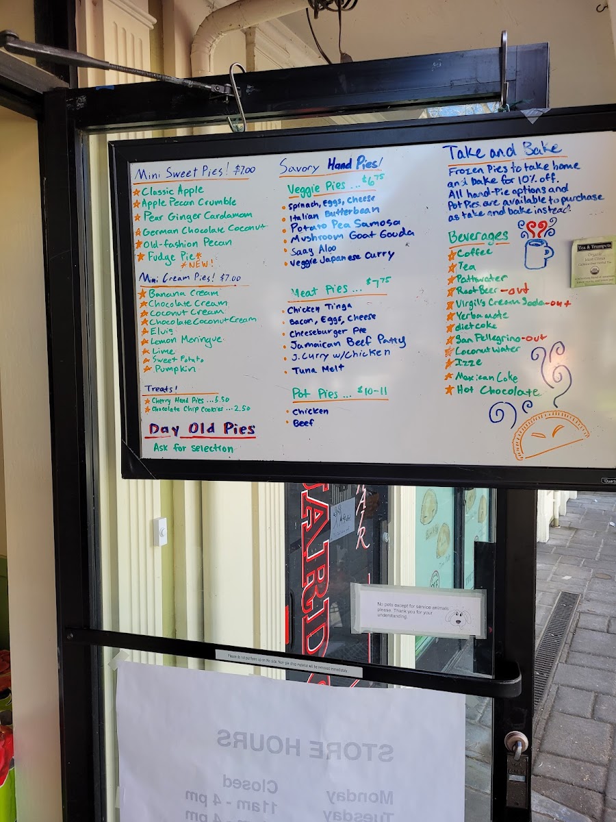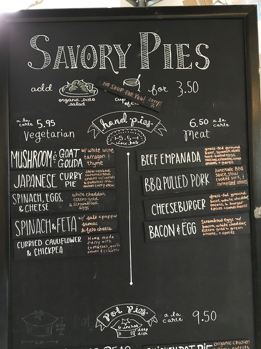 Guests often gravitate toward comforting favorites like hearty chicken pot pie or the rich, flaky apple pecan pie, alongside lighter options such as Japanese curry vegetable pie. Sweet selections range from traditional apple pie and lemon meringue to creative offerings like Elvis Pie and chocolate cream pie, perfect for afternoon indulgence or a casual dessert after a meal.