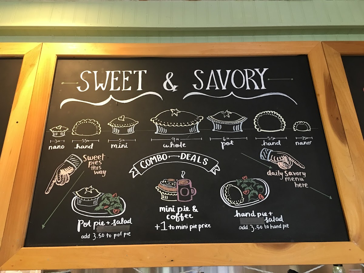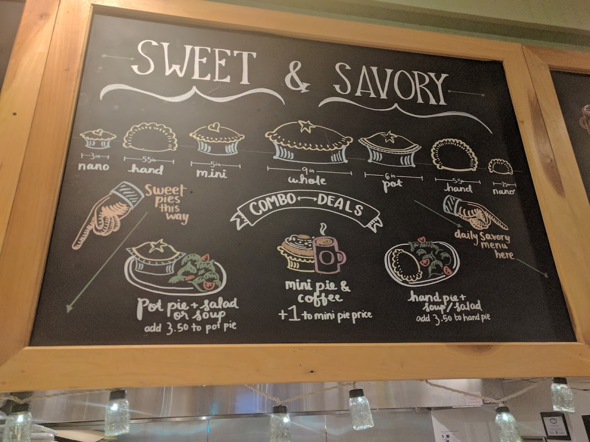The drink menu complements the food with a variety of approachable options: organic fair trade coffee, hot chocolate, refreshing homemade iced tea, and seasonal mulled cider provide cozy pairings throughout the day. Combo deals, like pot pie with salad or mini pie with coffee, offer a satisfying way to sample different flavors in a relaxed setting.